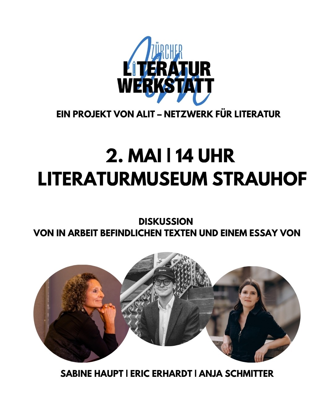 2. 5. 2026: 14:00 Zürcher Literaturwerkstatt Strauhof Zürich ------ 22. 5. 2026, 19:00: Lesung und Gespräch mit Sabera Aitabar, Azim Basharmal, Najibah Zartosht und mir Fokus Afghanistan eine Veranstaltung von lit.z (Literaturhaus Zentralschweiz) Gewürzmühle, St. Johannes Strasse 40, 6300 Zug ------ 29. 5. 2026 Tagung im Schweizer Literaturarchiv Bern 10-18 Uhr Die Grenzen des Lesbaren in den Werken von Erica und Gian Pedretti